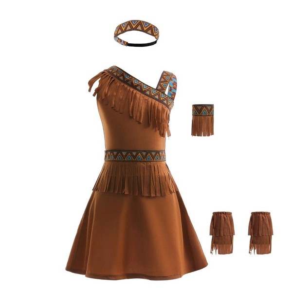 Lito Angels Princess Pocahontas Costume Set with Headband and Accessories for Kids Girls Age 13-14 Years Brown