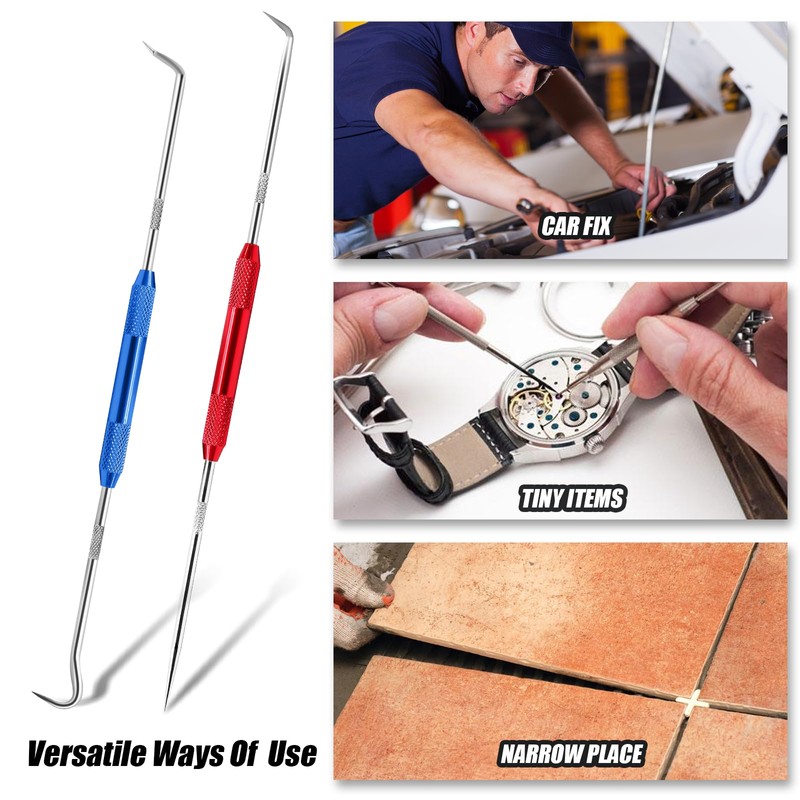 - ✅ Double headed design: The hook and pick tool adopts a double headed design, and each head has multiple different tools to choose from, including straight tips, hooks, 45 degree tips, and 90 degree tips, to meet different needs.