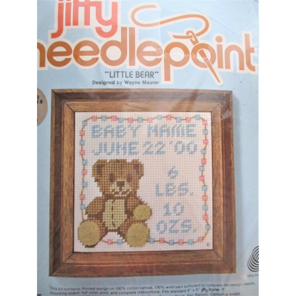 Little Bear Needlepoint Kit Printed Design on 100% Cotton Canvas, 100% Wool Yarn, Needle, mounting Board, Full Color Print and Complete Instructions