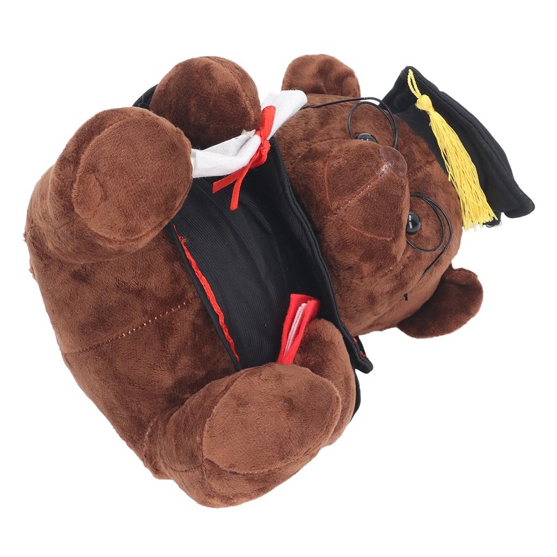 1、REALISTIC AND LIFELIKE: Bear plush doll is made of premium materials with exquisite and realistic detailing, bringing you unparalleled tactile and visual enjoyment. 2、MULTIFUNCTIONAL USE: Bear stuffed doll can be used as a sofa pillow to provide comfortable support and relaxation; it can also be used as a toy to fulfill children's play and imitation needs. 3、UNIQUE DESIGN: Bear plush toy is designed in the shape of a bear with a bachelor's cap and diploma, showing personality and fashion, making your decoration quite charming. 4、CUTE GIFT: Bear plush stuffed toy is suitable for Halloween, birthday and Christmas occasions, give friends and family a fun surprise. 5、SAFE AND RELIABLE: Cute bear doll is strictly tested and certified, nontoxic and harmless, giving you and your family a healthy guarantee.