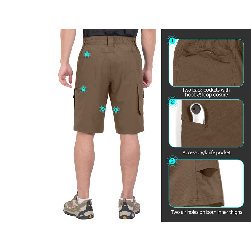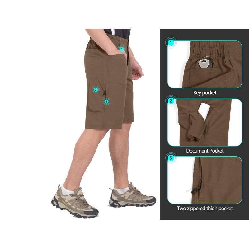 Little Donkey Andy Men's Quick Dry Shorts for Hiking Walking Work, Multi-Pockets Moisture-Wicking, Brown, Small