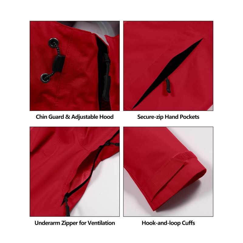 - WATERPROOF & WINDPROOF - The high performance rain jacket with a waterproof-breathable membrane and fully sealed seams will keep you comfortably dry on even the wettest days. An adjustable storm hood, hem and cuffs help seal out wind and rain.