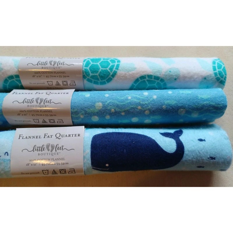 Little Feet Boutique set of 3 coordinating flannel fat quarters with cute ocean/sea life theme - blue
