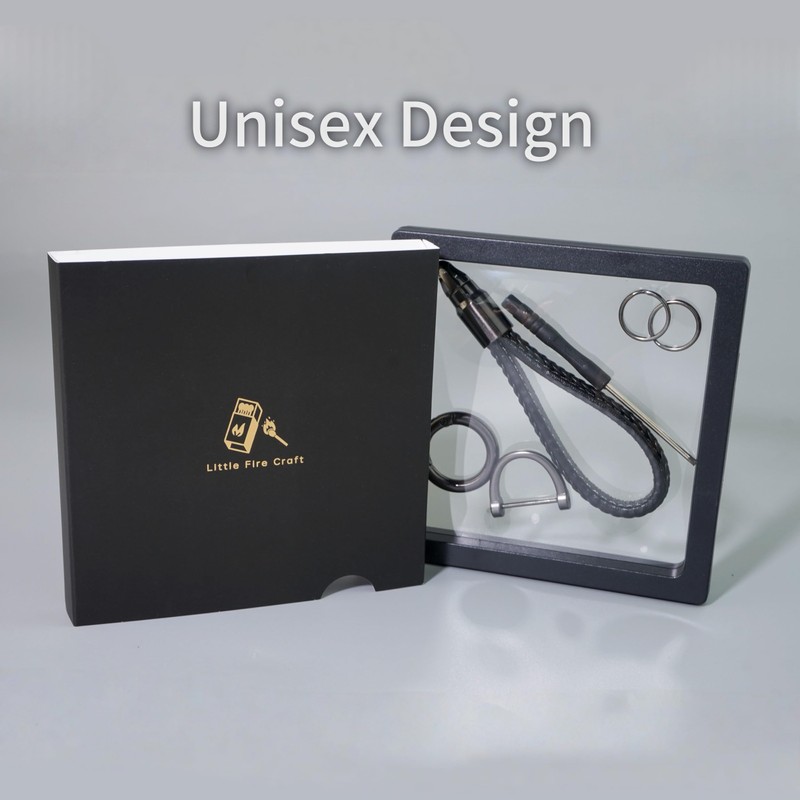 Little Fire Craft Leather Keychain Car Key Chain Key Fob Holder 360 Degree Rotatable Car Keychain for men and women Leather Keyring with Gift Box - Black