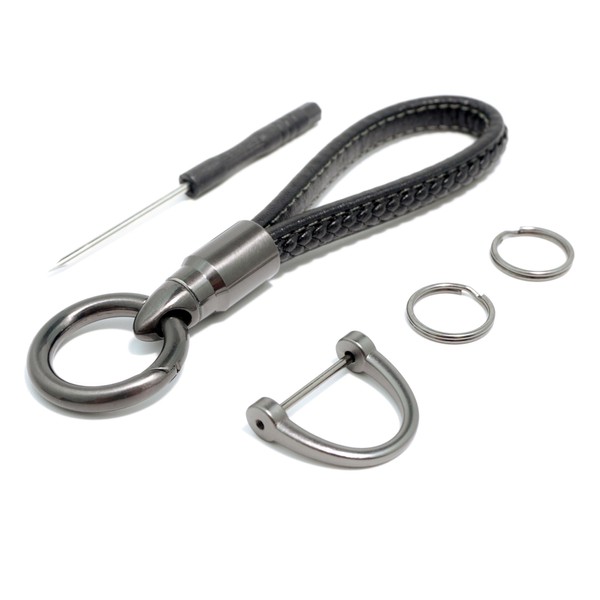 - Package includes a leather strap with durable circle metal keyring, a detachable D-shaped key hook, two small metal rings and a small tools, ideal for securely holding car keys and additional keys.