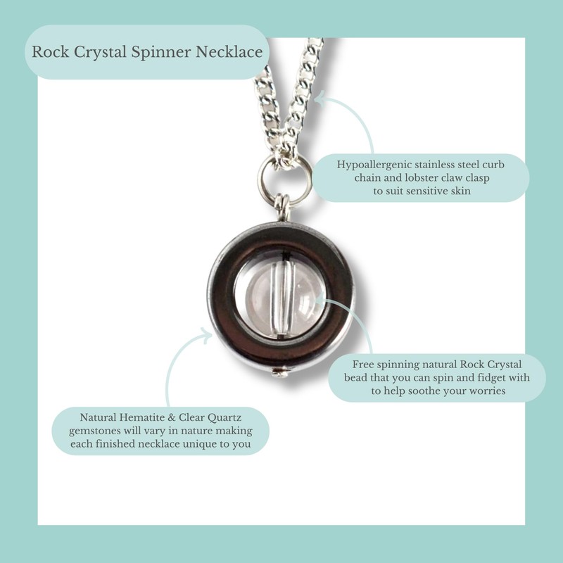 Little Gems Jewels Edelstein Fidget Spinner Halskette, Edelstahlkette (Bergkristall, 20 Zoll)