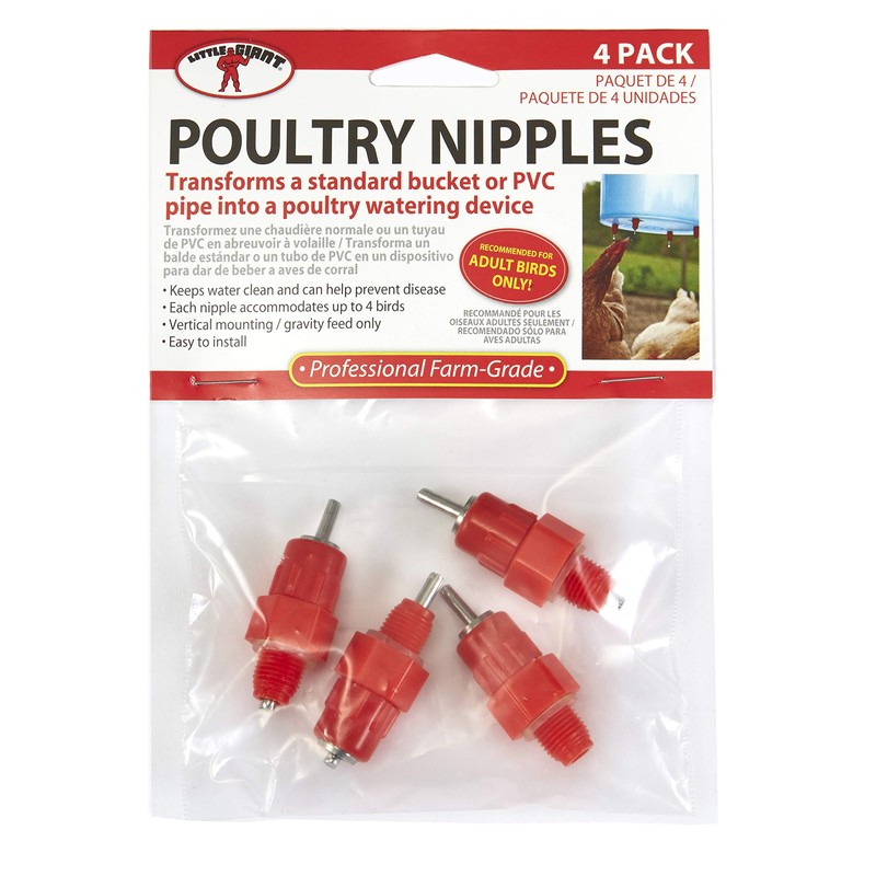 Little Giant Poultry Nipple (4-Pack) Gravity Fed Water Nipples for Automatic Bird & Chicken Watering (Item No. 172035)