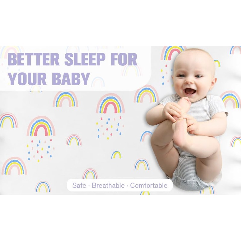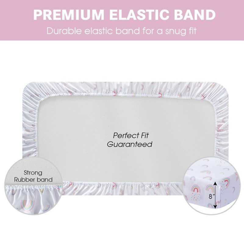 - MADE WITH SAFETY - Your fitted sheets are made from 100% microfiber - breathable, cuddly and lightweight, which is formaldehyde free and uses non-toxic dyes that won't harm your little one. The super strong premium elastic band is sewn in all around 360 degrees to ensure it stays in place all night and sits without wrinkling.