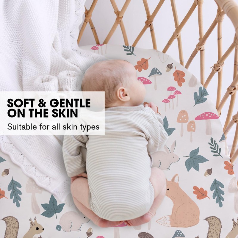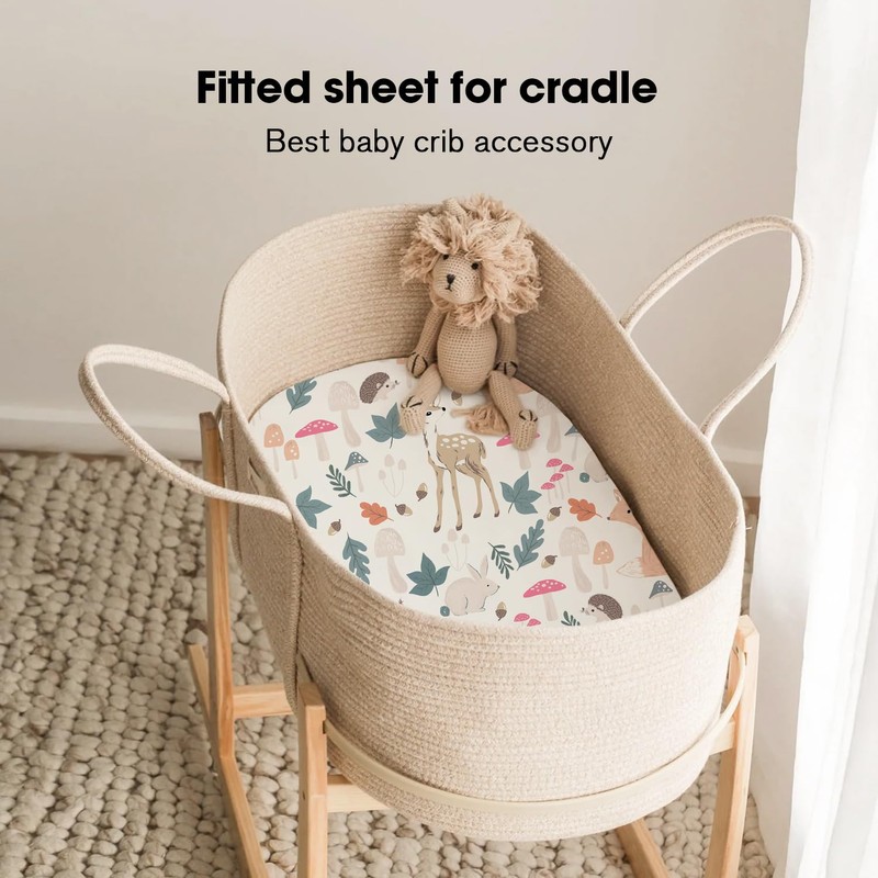 Little Grape Land Moses Basket Sheets, Newborn Pram Sheet Fitted for Baby Boy and Girl, Crib Baby Bassinet Sheet, Wetland Birds/Squirrel/Mauve/Fog Blue