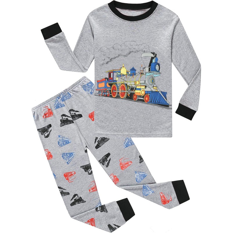 Little Hand Boys Pyjamas Long Sleeve Autumn Winter Children's Digger Sleepwear Off-Road Vehicle Hook Machine Fire Engine Pyjamas 1-7 Years, 3-Grey Train