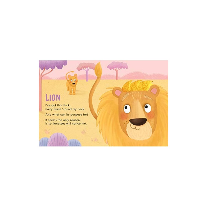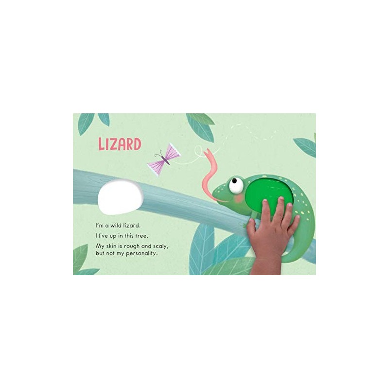 Enjoy reading time where a child can explore these fun wild animals: Tickle the cuddly koala's ear Feel the scaly skin of a lizard Pat the friendly lion Touch the smooth dolphin Pet the elephant's leathery ear