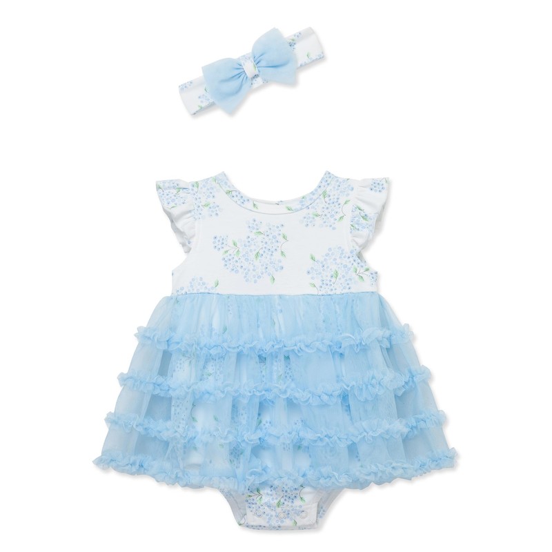 - Your little hydrangea honey will look heavenly in this newborn baby girls' hydrangea mesh popover and headband set! Little Me creates unique clothing that celebrates those fleeting years when newborns transform into young toddlers. Our products let little ones be little, whether they are napping, throwing cereal on the floor, or crawling through deliciously muddy grass.