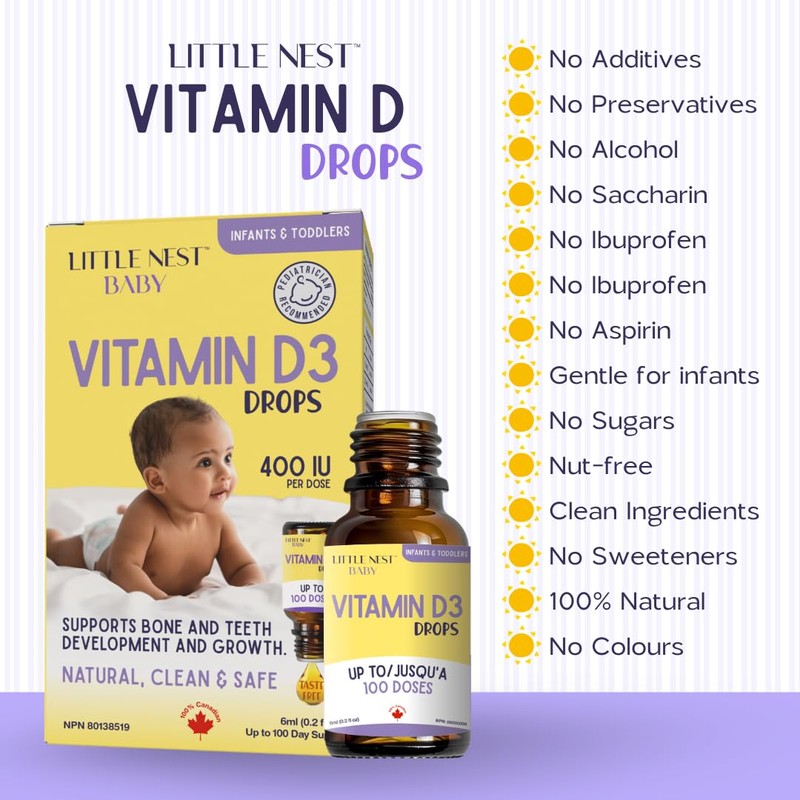 Little Nest: Baby Vitamin D3 Drops – 400 IU per Dose | Natural & Clean Formulation for Infants & Toddlers | 100 Day Supply