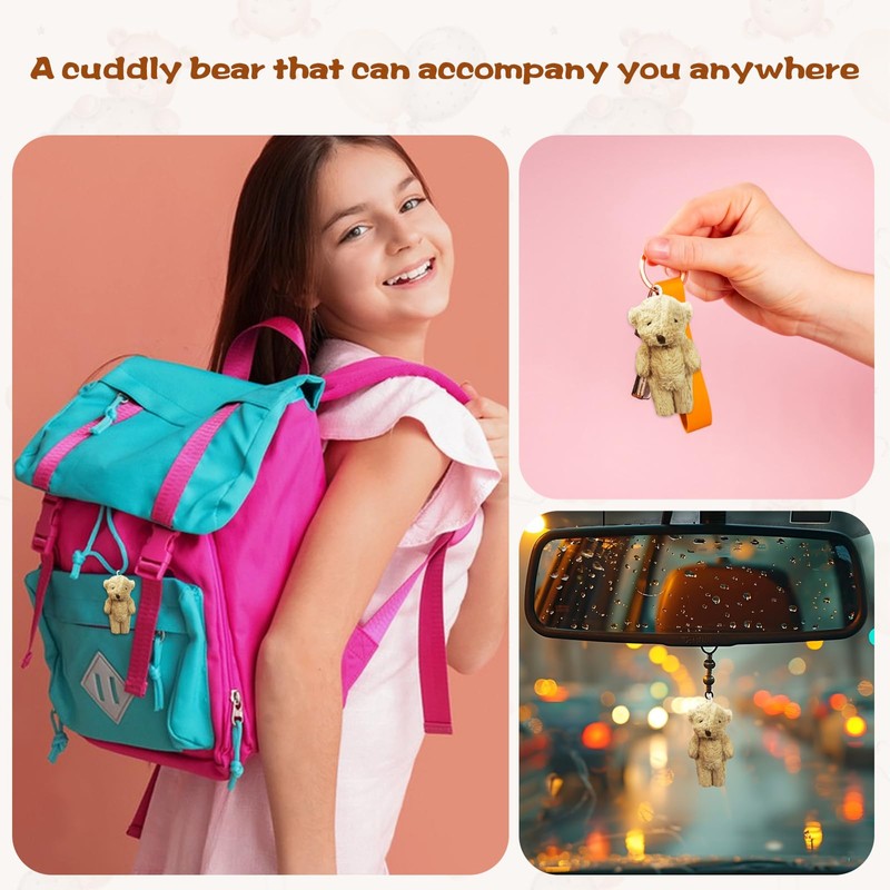 - [LONG TERM COMPANION]: Personalised bear in kraft paper box can be placed in the palm of your hand or pocket, easy to carry; bear head with a lanyard, during the day you can also hang the mini bear in handbags, backpacks, or as a key ring decorative pendant, etc.; at night you can let the bear back to sleep quilt and put it on the desk, car, bedroom silent companion