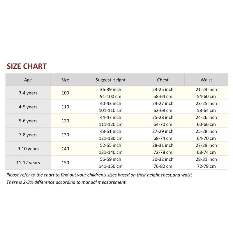 Age 5-6 years: Suggest Height:44-47 inch Chest:25-28 inch Waist:24-26 inch