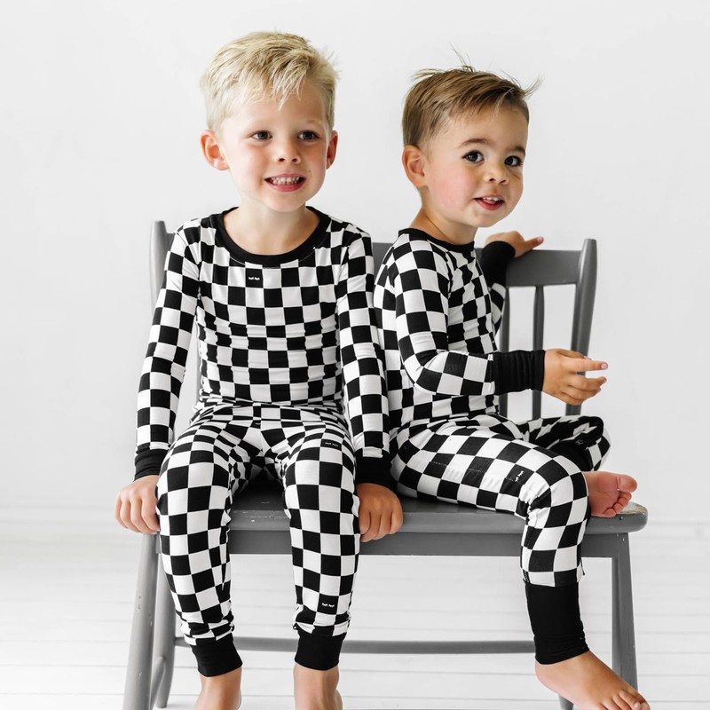 Little Sleepies Two-Piece Pajama Set for Boys & Girls, Soft Viscose from Bamboo Toddler Pajamas for Kids, Family Matching PJs, Cool Checks, 12-18 months