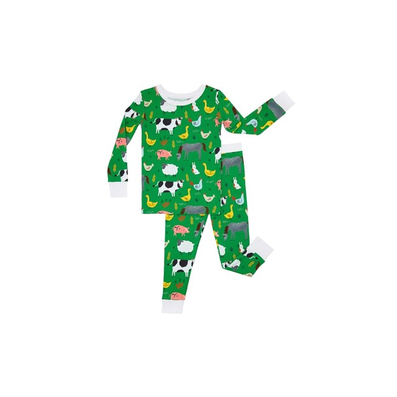 Little Sleepies Two-Piece Pajama Set for Boys & Girls, Soft Viscose from Bamboo Toddler Pajamas for Kids, Family Matching PJs, Green Farm Animals, 12-18M