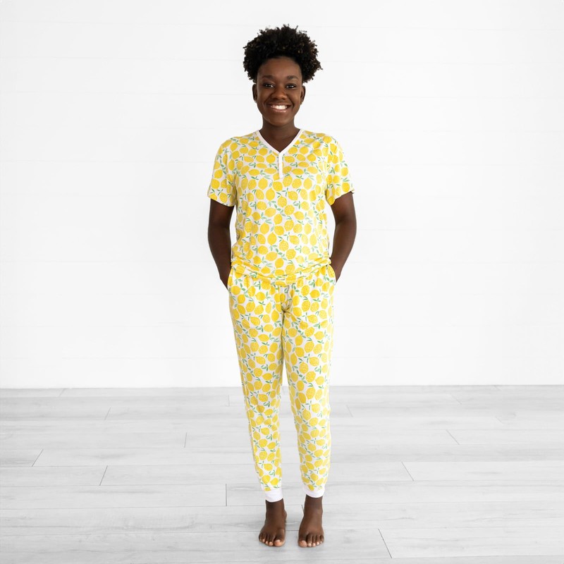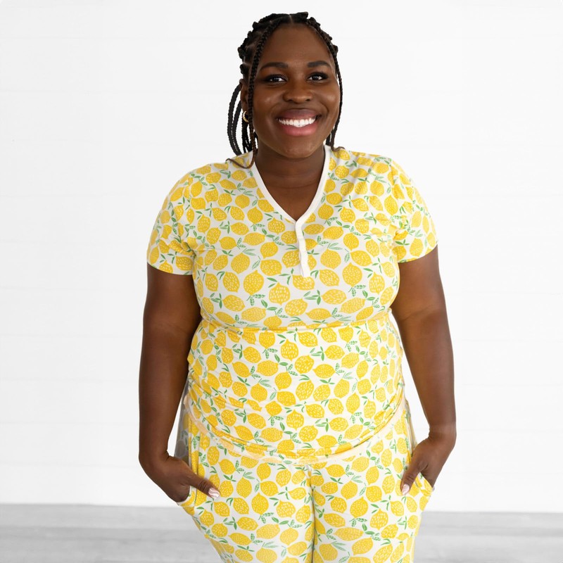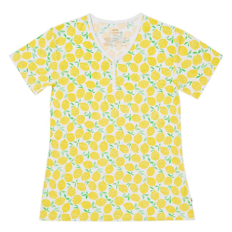 Little Sleepies Viscose from Bamboo Women's Pajama Top - Soft Henley Button Up Pajama Top, Nursing Friendly, Short Sleeve, Lemons, XX-Large