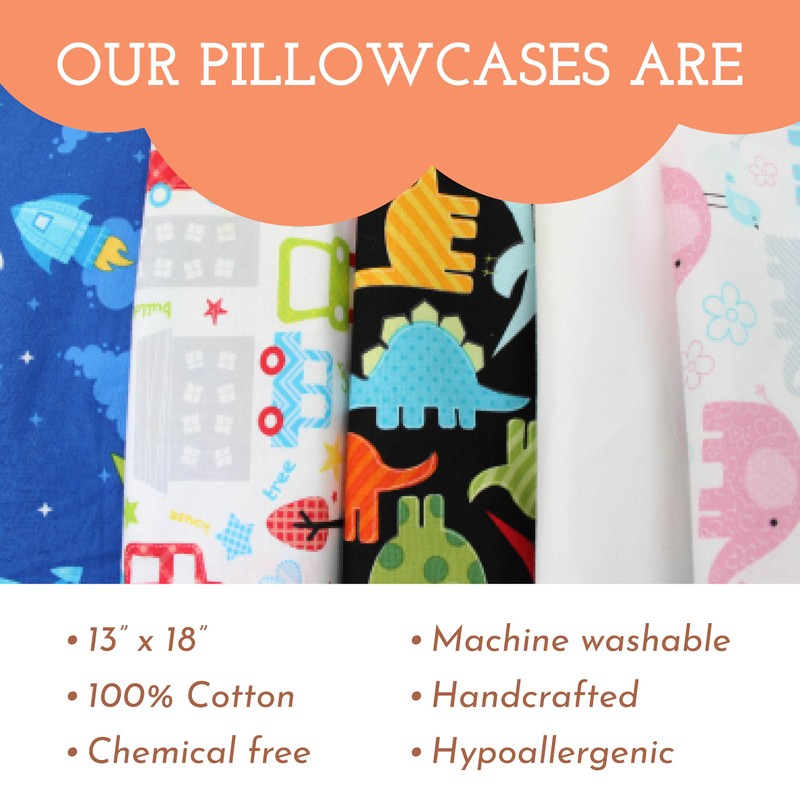 - Toddler 13x18 Pillowcase - Our toddler pillowcases are made of soft, 100% cotton that becomes softer with each wash! All toddler pillowcases are machine washable for easy cleaning when needed. This allows for hassle-free care. It will fit most toddler pillows on the market and fits the Little Sleepy Head Toddler Pillow (sold separately) best!