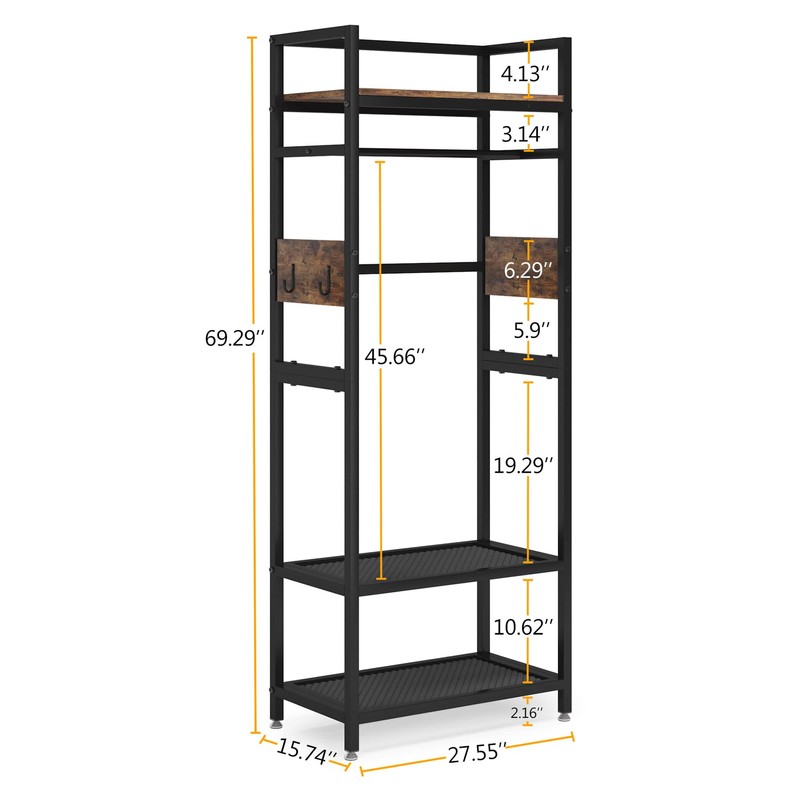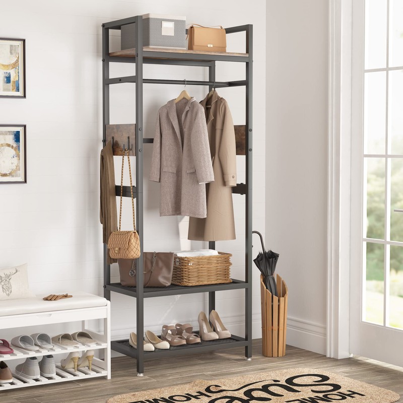 LITTLE TREE Clothes Rack with Shelves, Industrial Hall Tree Garment Rack Smal...