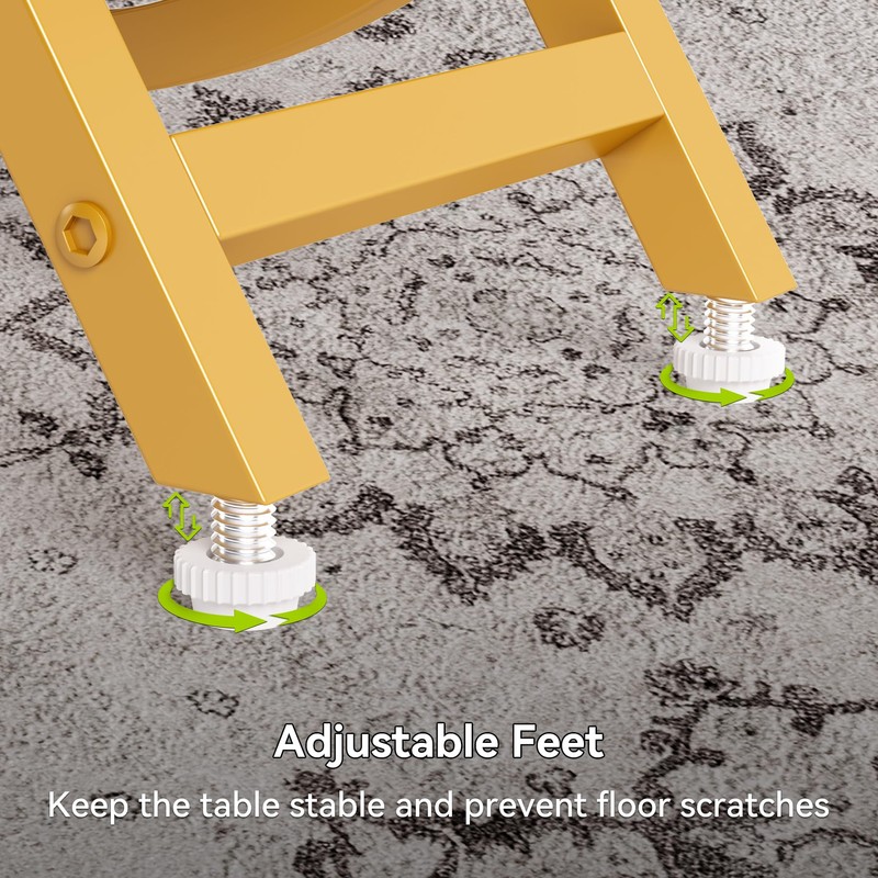 - Sturdy Side Table: With a reliable and durable metal frame, the slim side table holds a large weight. The round frame does not deform after a long time of use. Adjustable feet keep the wood end table stable on uneven surfaces and foot pads prevent scratching the floor