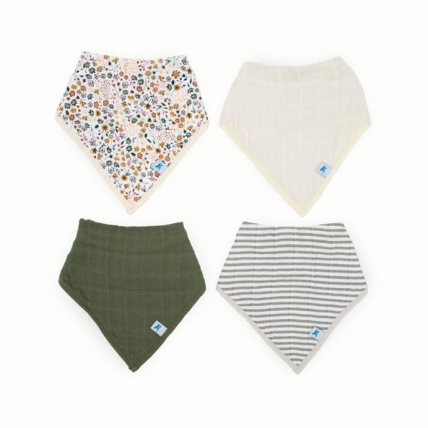 Little Unicorn Baby Bandana Bib 4 pack | Absorbent, Extra Soft Cotton for Drooling & Teething | Adjustable fit (Pressed Petals)