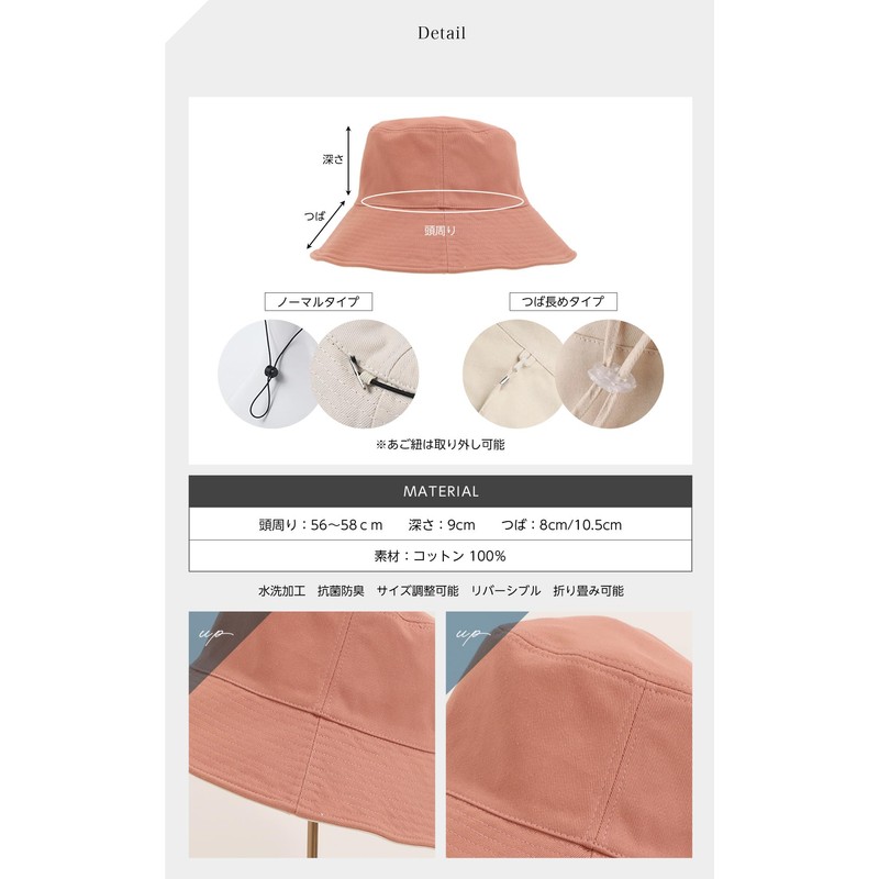 - Specifications: Head circumference 22.0 - 22.8 inches (56 - 58 cm), Depth 3.5 inches (9 cm), Brim is 3.1 inches (8 cm) and 4.1 inches (10.5 cm). 100% cotton material with antibacterial and odor resistant properties. Fully washed with water to adjust the size and fold. It is full of features that are pleased by women