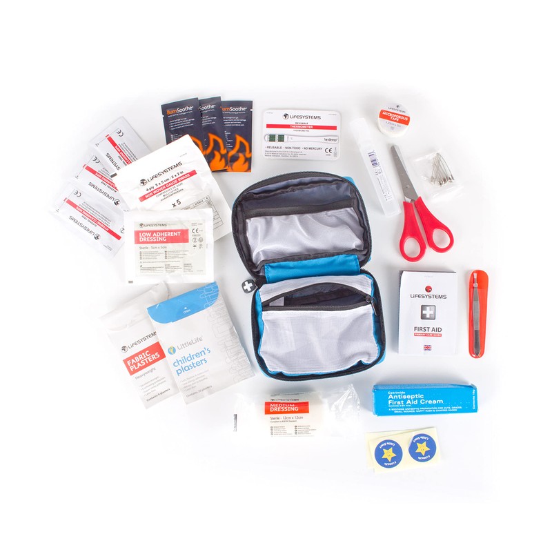 - A compact, neatly organised, well-equipped kit for parents to use in treating common injuries. Packed with many useful items, including ‘little star’ stickers and everything you need for day to day bumps and scrapes at home or on your travels