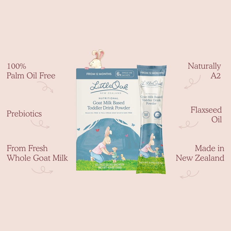 - Our LittleOak Sachets are perfect for on-the-go occasions. Our toddler milks are created from fresh, whole goat’s milk and are the first in the world to be certified 100% palm oil free.