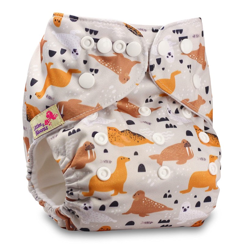 Littles & Bloomz, Reusable Pocket Cloth Nappy, Fastener: Popper, Set of 1, Pattern 14, with 1 Bamboo Insert