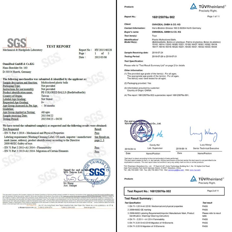 The LittleTom PE balls are suitable for children from 0+: they are made of high quality plastic (new material, not recycled), the color do not fade and they are 100% odorless. If crushed, they immediately return to the original shape.