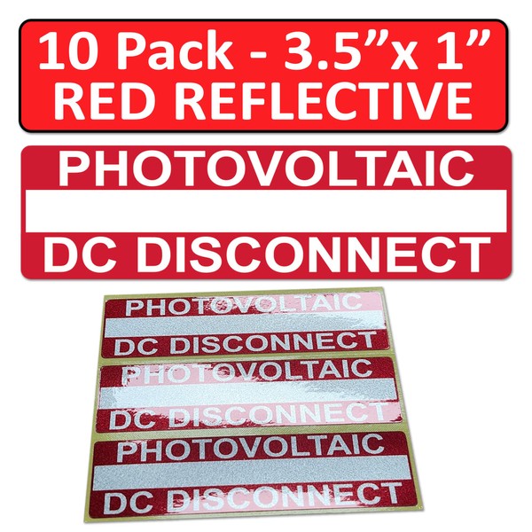 Littversions 10 Pack 3.5"x 1" Reflective Solar NEC Compliant Photovoltaic DC Disconnect Outdoor Rated Laminated Labels Sticker 149861 UL-969 Standard 596-00854 596-00238