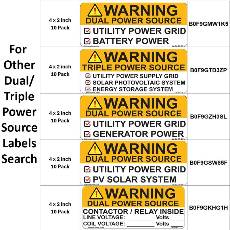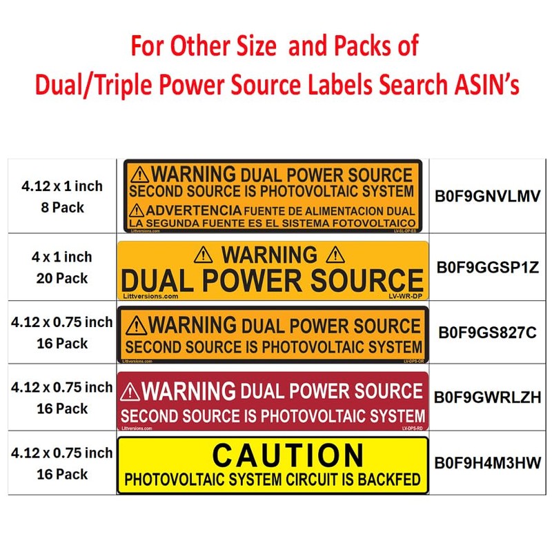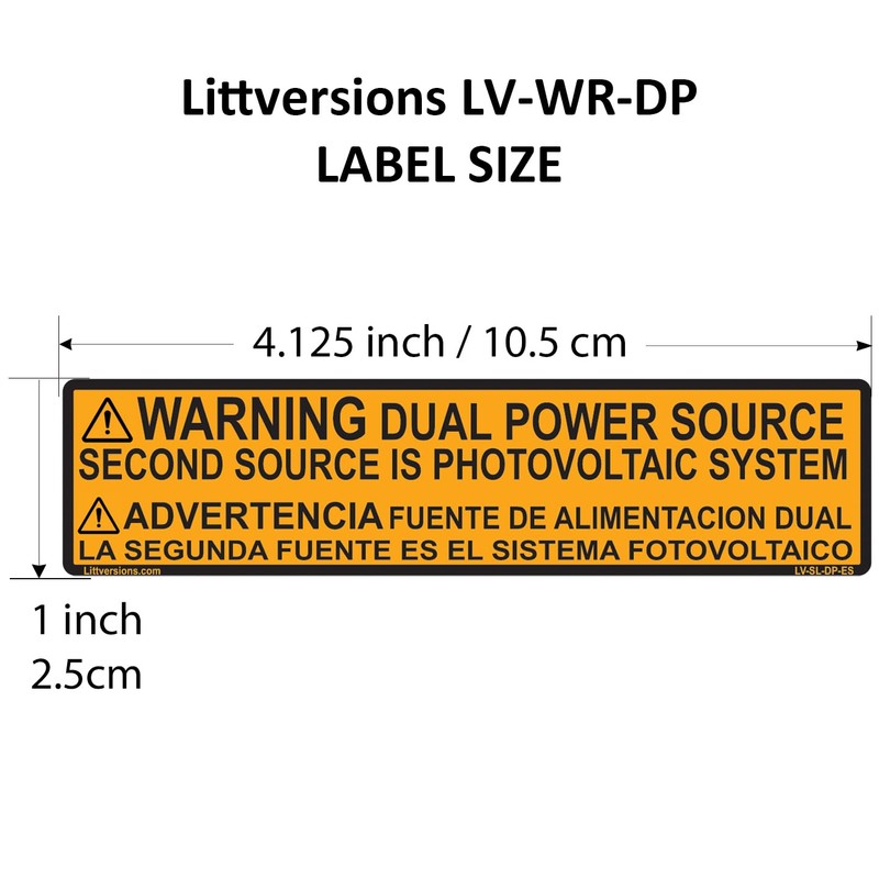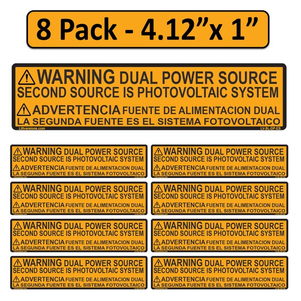 Littversions 8 Pack 4.125"x 1" CA Outdoor Rated Laminated Labels Solar NEC Compliant Warning Dual Power Source Photovoltaic PV System OSHA UL-969 Standard Bilingual Spanish Waterproof