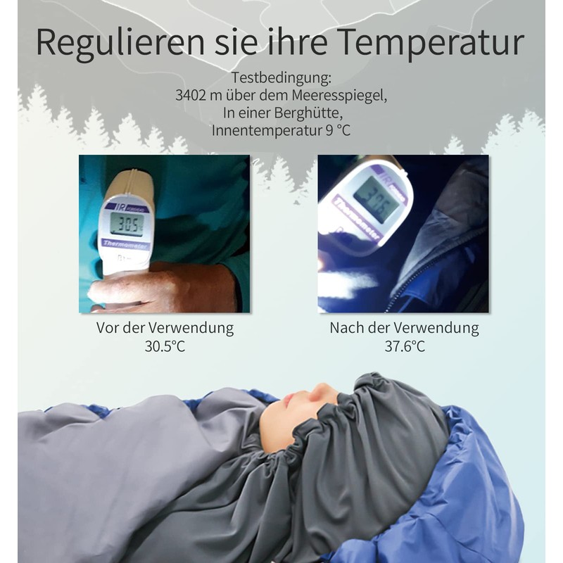 - Stay Warm & Comfortable: We have designed this sleeping bag liner to give you an easy way to stay warm and comfortable even outdoors. In combination with a sleeping bag, this travel sleeping bag can give your sleeping bag warmth up to 12 °C to ensure a good night's sleep
