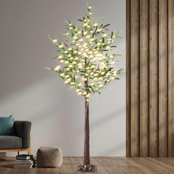 Lituplife Lighted Olive Tree 6FT Tall Fakeplant Tree with 300 Warm White Fairy Lights, Artificial Lit Olive Trees with Switch Button for Indoor/Outdoor Office Home Decor