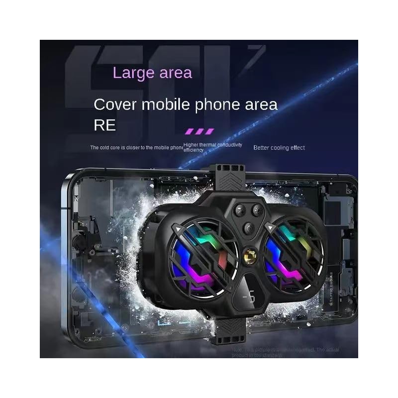 - 5. Led Technology : Colorful lights make the back of the phone more beautiful.The RGB color mode is very beautiful。Compared with the old phone radiator, you can also turn off the led lights of the radiator when you sleep, which is very convenient