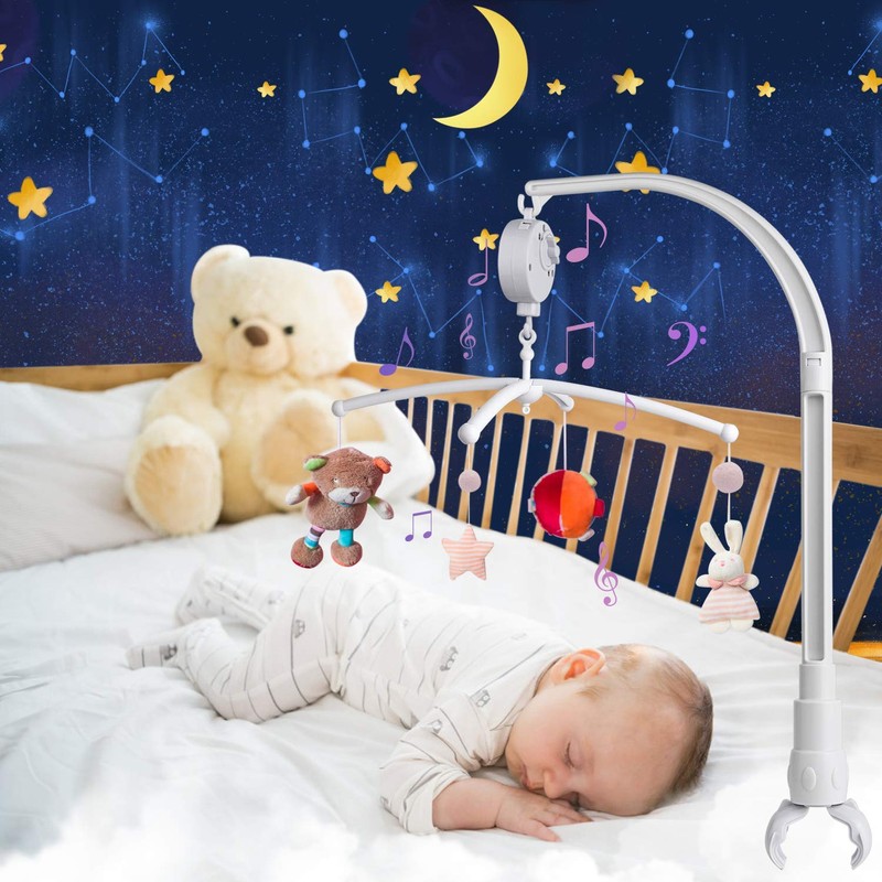 - Wind-up Music Box with light music help your baby easier fall asleep. Fits traditional and convertible cribs.No need screws and more convenient to carry.