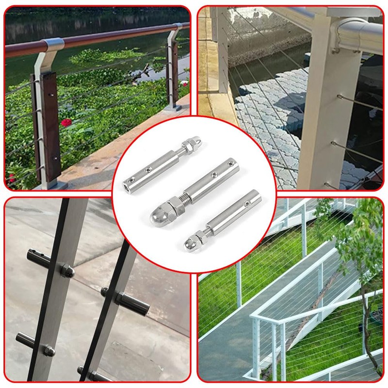 - ★ EASY INSTALLATION These wire rope cable connectors need to be used with screws, hex nuts, cap nuts and wire rope.