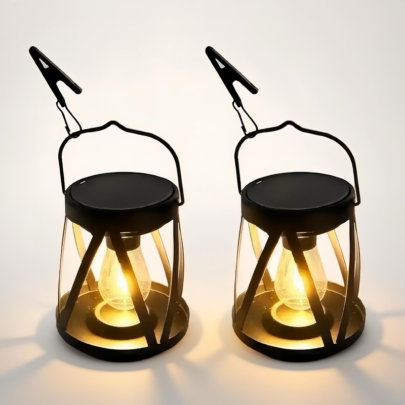 Liuyife Solarlampen für Außen Hängend, 2 Stück Metall Solar Laternen für Draußen mit LED-Glühbirne, IP65 Wasserdicht Solarlampen für Außen Terrasse Balkon Hof Gartendeko