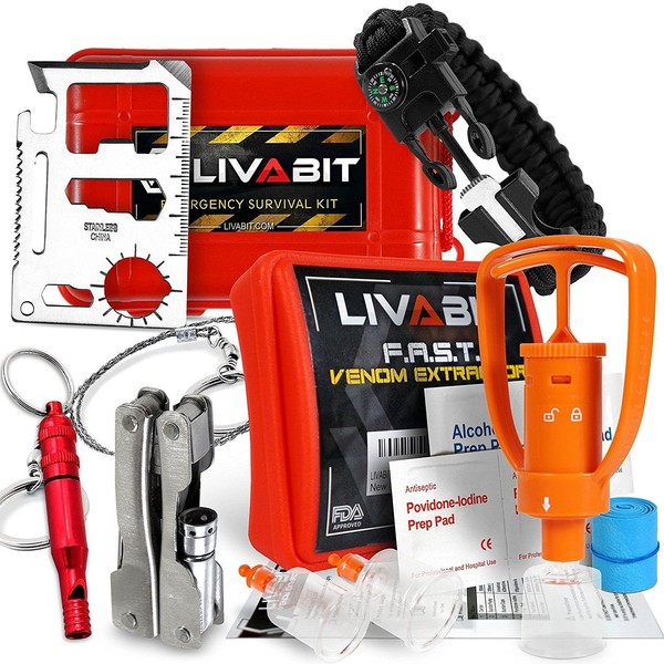 LIVABIT Dual Pack First Response Safety Tool Emergency Kit Venom Sting Extractor Pump & SOS Survival Multi Tool Pack