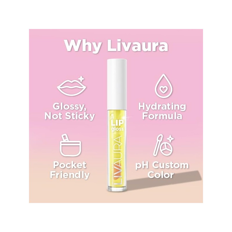 - SHINY LIP GLOSS FOR WOMEN – LIVAURA pH Shimmer Lip Gloss is a hydrating, non sticky lip gloss with light-reflecting shimmer for a custom lip tint gloss and glossy lip shine in 6 stunning shades.