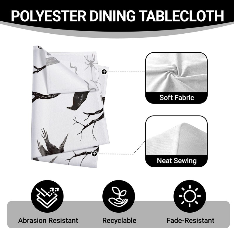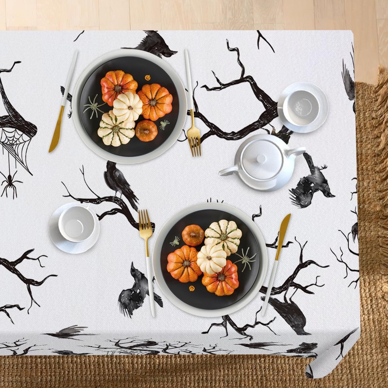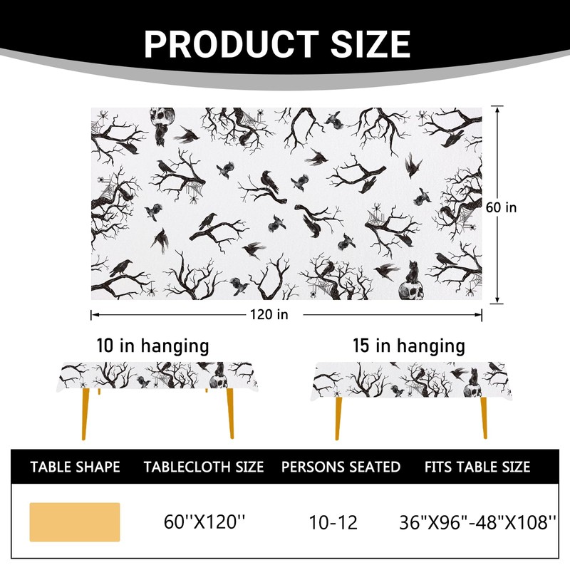 Livcoz Halloween Crow Branches Rectangle Tablecloth 60 x 120 Inches, Scary Gothic Skull Skeleton Black Cat Decorative Dining Table Cloth, Creepy Spider Web Dinner Tablecover Picnic Party Decoration