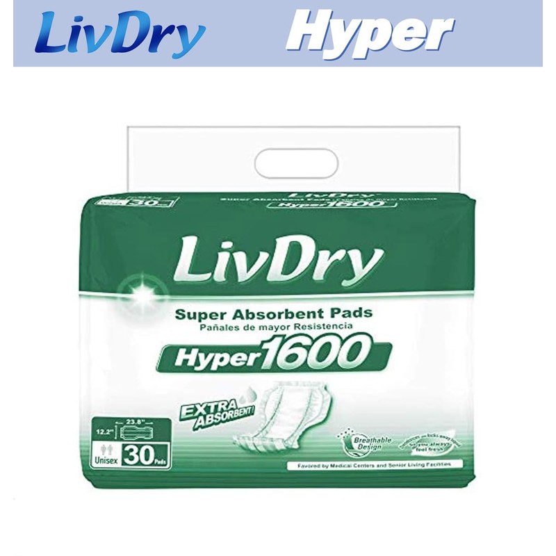 LivDry High Absorbency Pad Insert for Incontinence Briefs and Adult Diapers, Women and Men, Hyper 1600 (30 Count)