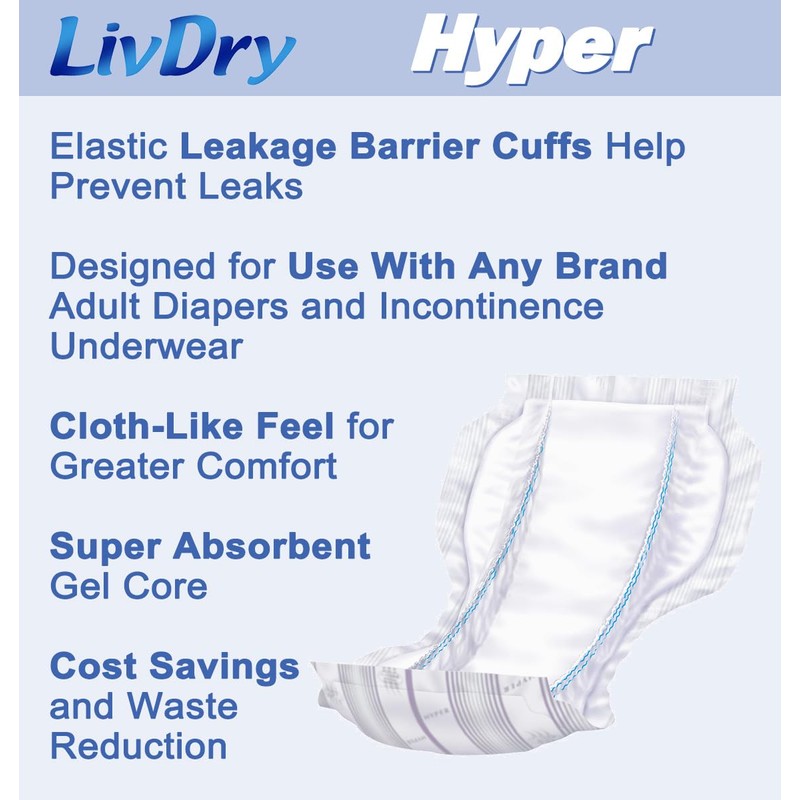 LivDry High Absorbency Pad Insert for Incontinence Briefs and Adult Diapers, Women and Men, Hyper 2000 (20 Count)