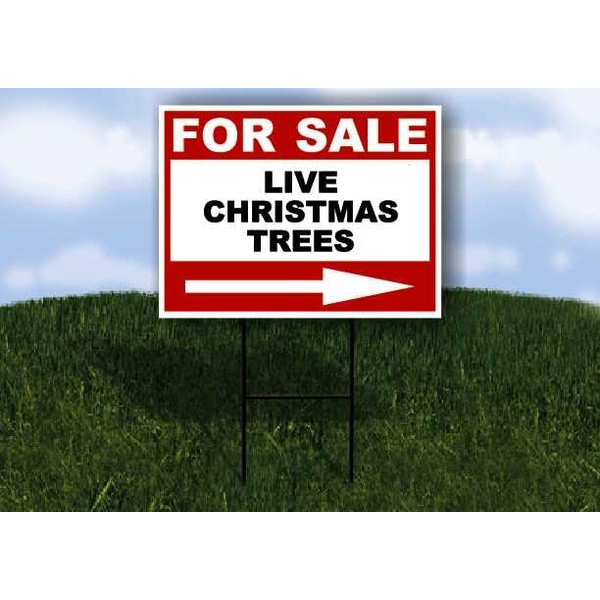 LIVE CHRISTMAS TREES For Sale White Red Black Right Arrow 1 Single Sided 18x24 in Yard Road Sign w/Stand