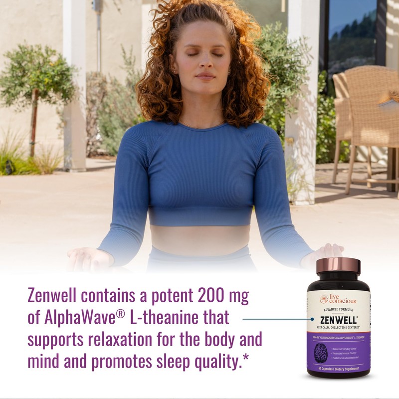 Live Conscious KSM-66 Ashwagandha Supplement w/L Theanine & AlphaWave - ZenWell Everyday Stress Relief, Cognitive, Brain Health - Ashwagandha for Men & Women - 60 Capsules