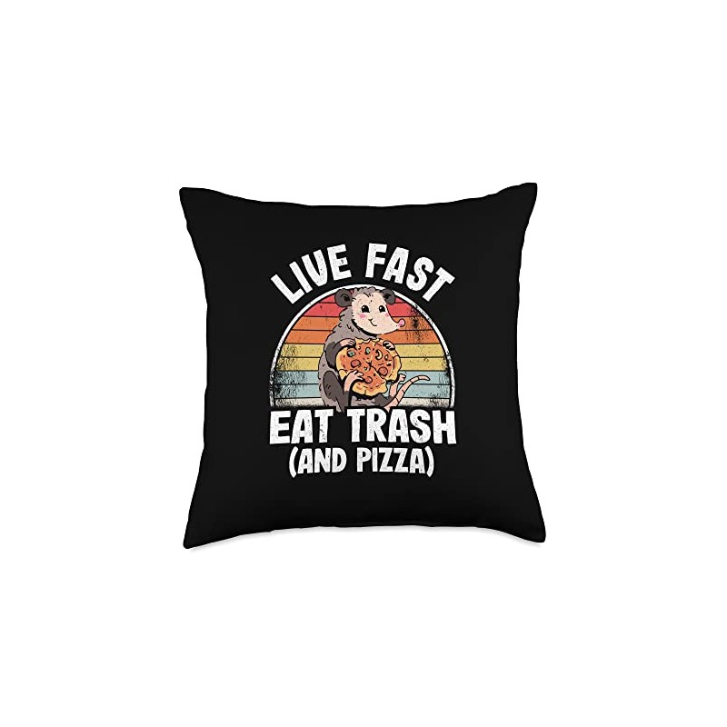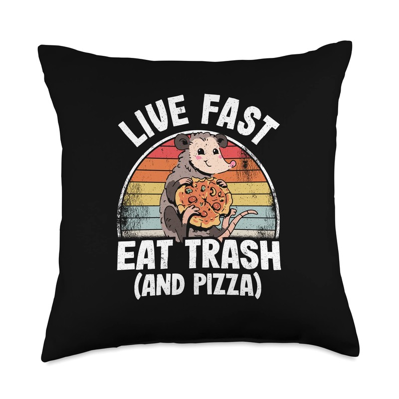 Live Fast Eat Trash And Pizza Opossum Funny Possum Throw Pillow