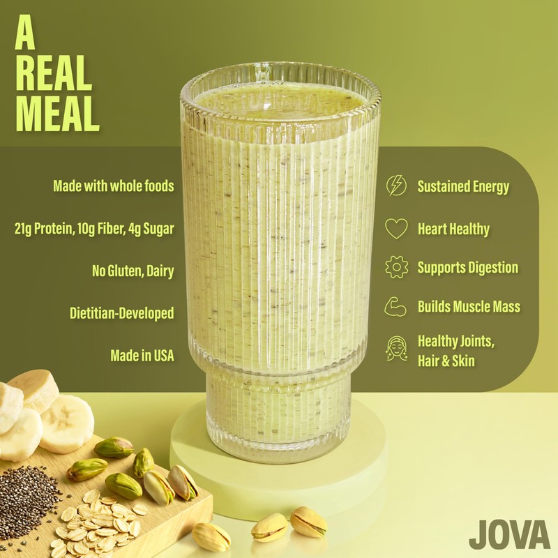 JOVA Pistachio Smoothie Mix | Healthy Snack with Whole Foods: Oats, Cacao, Cashews, Collagen & Chia Seed | Ready in 1 Minute (22g Protein, 10g Fiber, 4g Sugar), 3-Pack