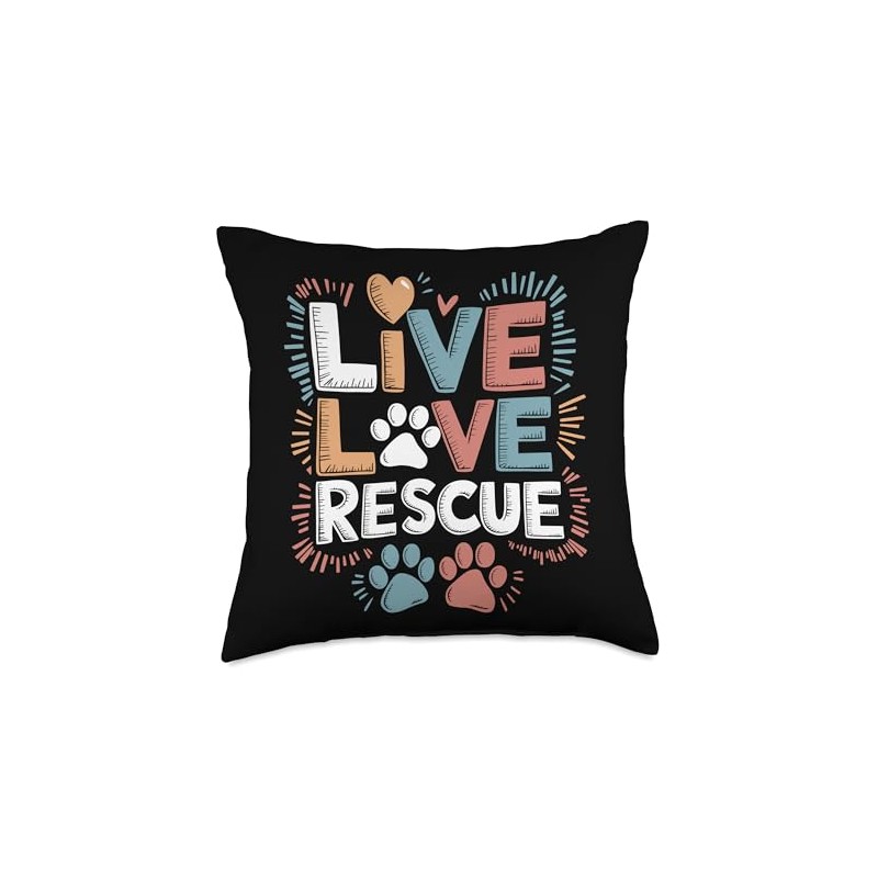 Live Love Rescue, Shelter Save Pet Adopt Animal Rescue Throw Pillow