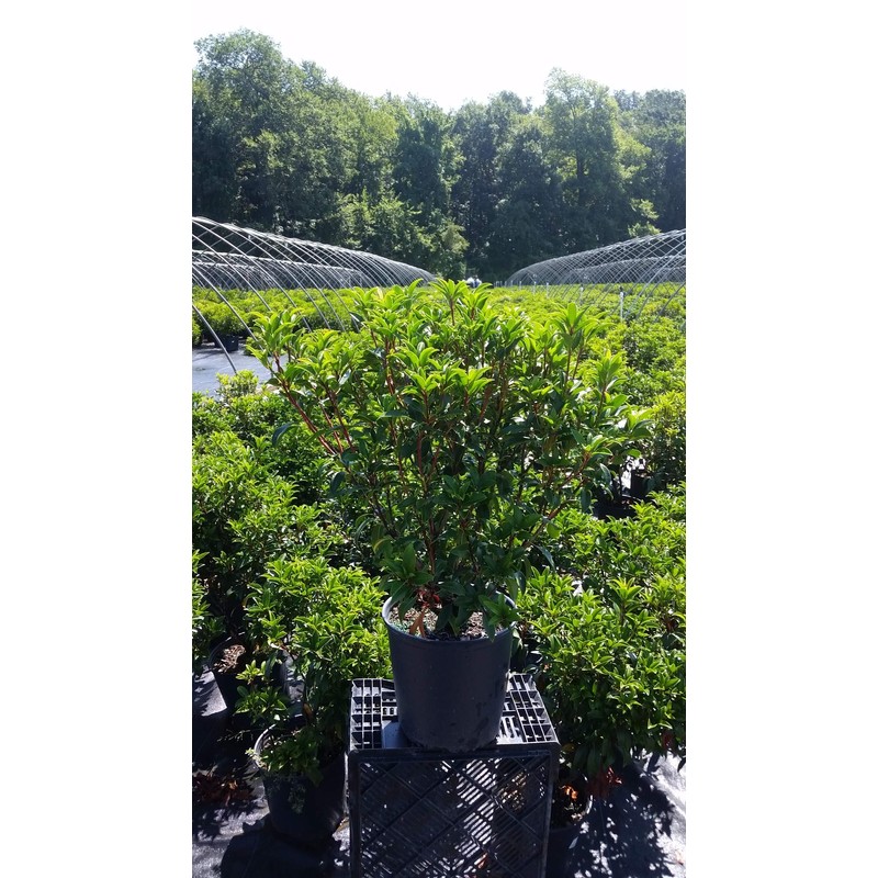 • LIVE PLANT: Spreading branches hold lustrous, deep green, evergreen foliage. Flower buds begin to show in spring and, as May turns to June, the buds are a deep burgundy red. Bloom opens in early June creating a truss of raspberry pink flowers that shine against its deep, dark foliage backdrop. Flowers attract native pollinators and butterflies.